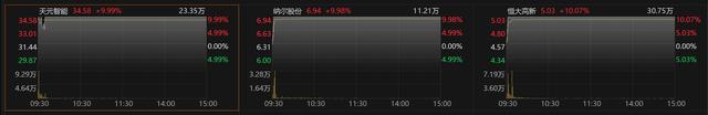 多重利好驅(qū)動氫能板塊拉升,擁有水制氫設(shè)備的天元智能收盤錄得6連板,擬與新視揚共同設(shè)立江西恒大綠能科技有限公司主要開展氫能源等新能源材料業(yè)務的恒大高新、子公司旗下具有氫能源領(lǐng)域核心零部件等項目的納爾股份雙雙漲停。