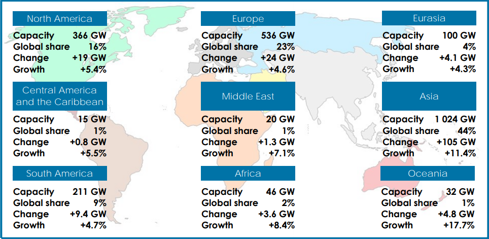 2018年可再生能源發(fā)電量與上一年同期相比增加7.9%,即171吉瓦。