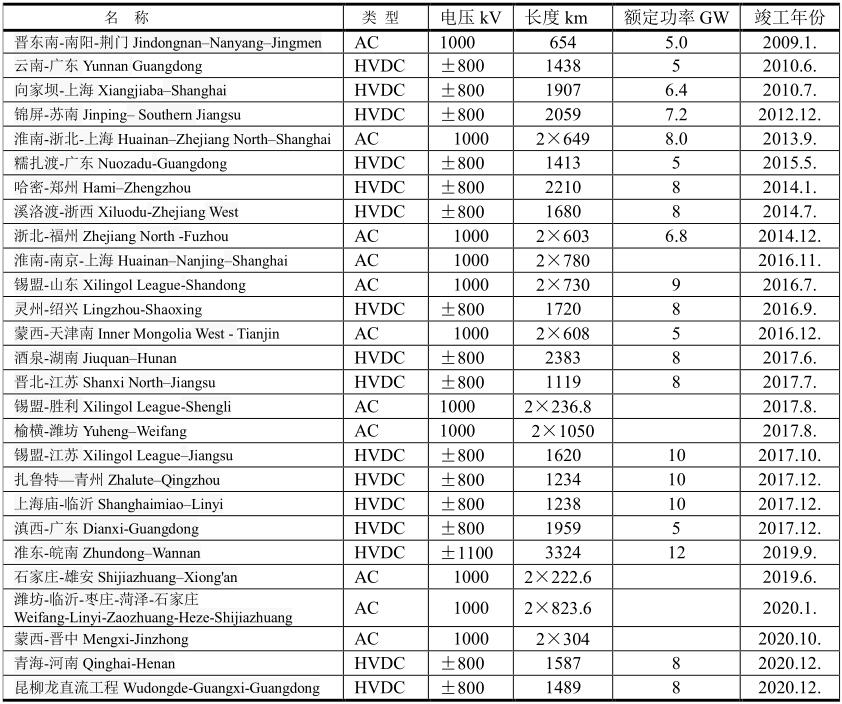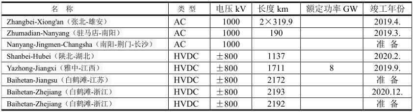 2020年已建成或在建的特高壓線路