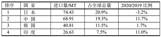 2020年LNG進(jìn)口最多的前4位國(guó)家