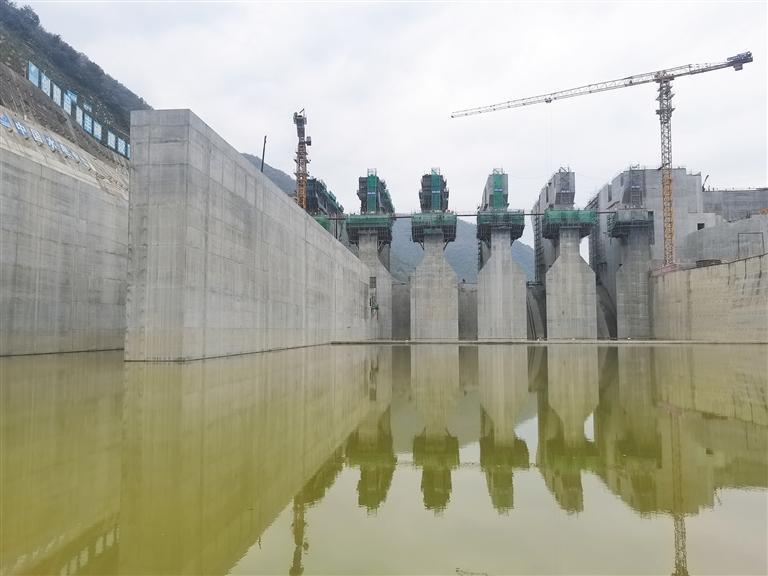 近日,隨著表孔5號(hào)閘墩最后一罐混凝土落下,全長(zhǎng)349米、高程455米的陜西引漢濟(jì)渭工程黃金峽水利樞紐混凝土重力壩澆筑至頂,全面進(jìn)入蓄水沖刺階段。