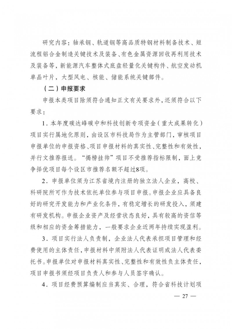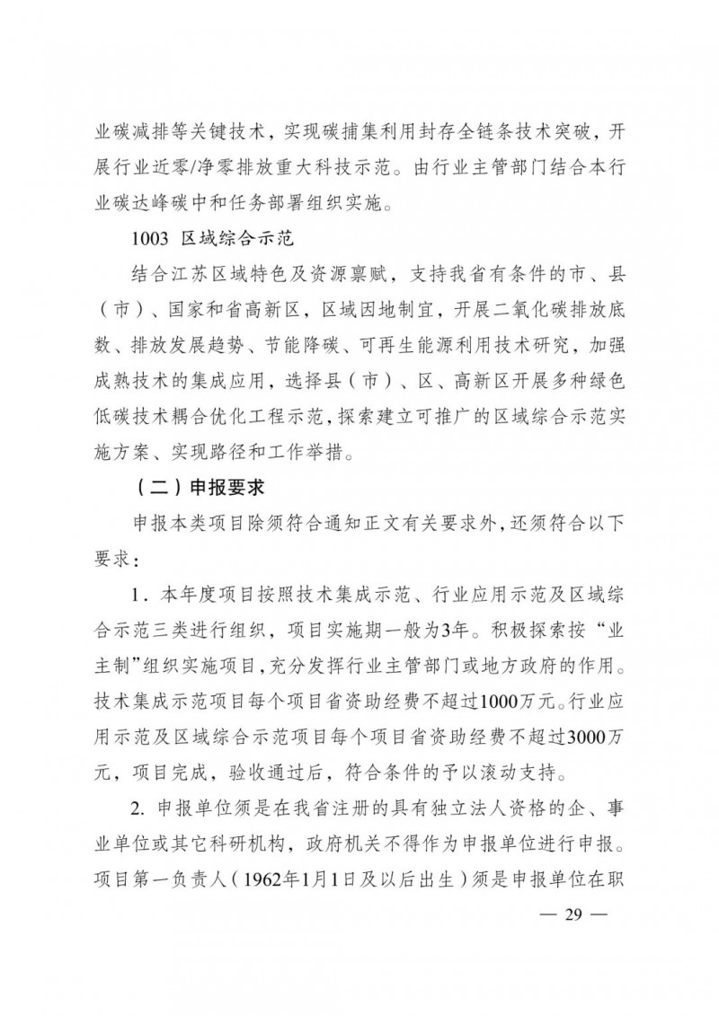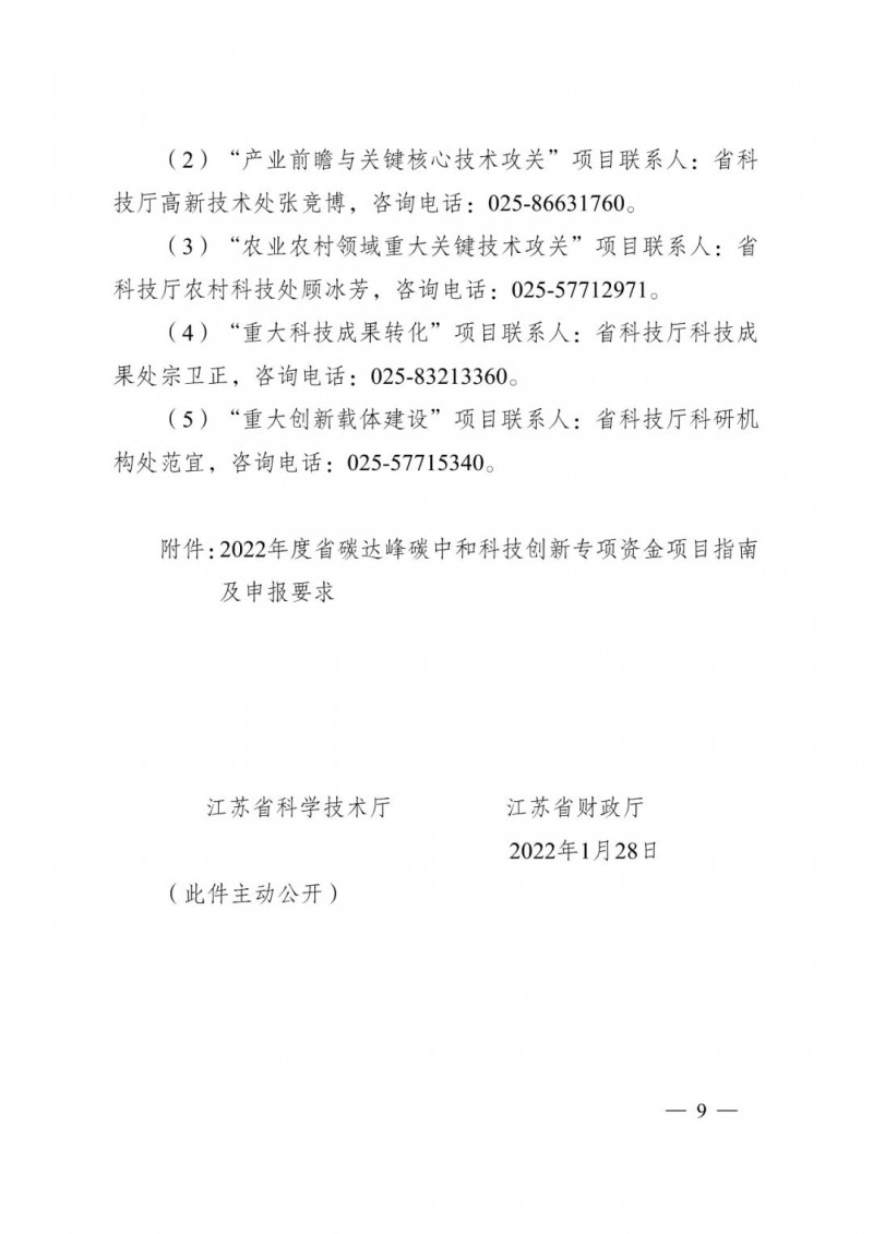 近日,江蘇省科學技術廳及財政廳發(fā)布《2022年度省碳達峰碳中和科技創(chuàng)新專項資金項目指南》。