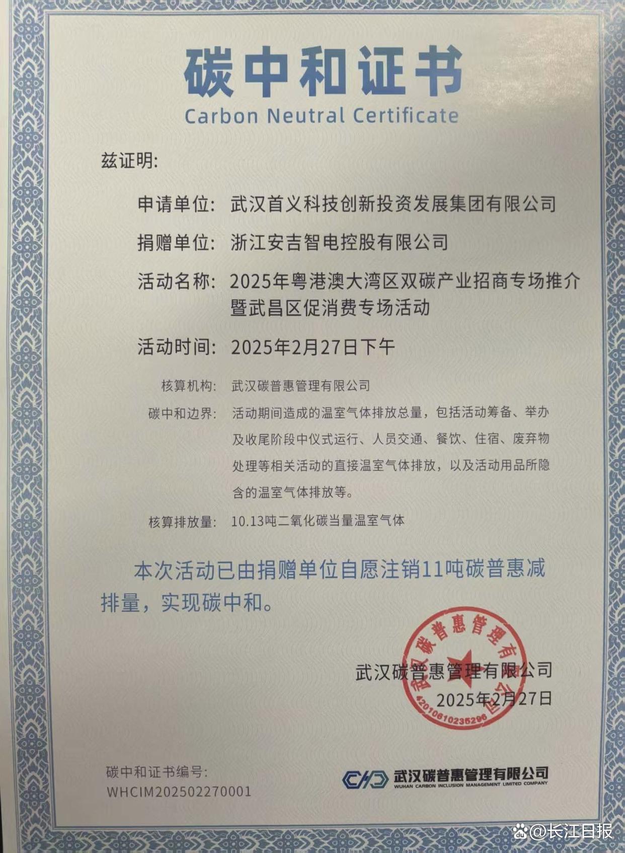 2月27日,2025年粵港澳大灣區(qū)雙碳產(chǎn)業(yè)招商專場推介暨武昌區(qū)促消費(fèi)專場活動在深圳舉辦。這場“碳招商”不僅吸引了大灣區(qū)144.2億元“碳投資”落地武漢,還實(shí)現(xiàn)了“碳中和”。