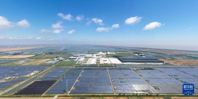 6月6日拍攝的射陽港低(零)碳產(chǎn)業(yè)園外景(無人機(jī)照片)。新華社記者 楊磊 攝