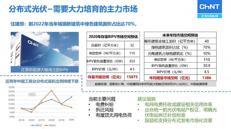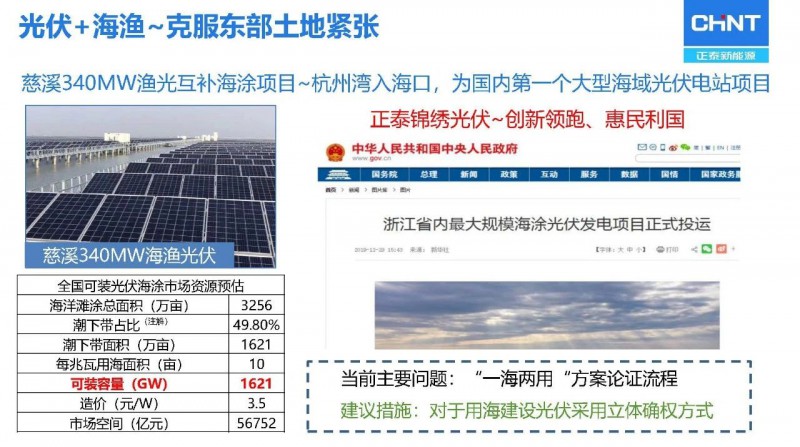 2021年2月3日,由中國光伏行業(yè)協(xié)會主辦的“光伏行業(yè)2020年發(fā)展回顧與2021年形勢展望網(wǎng)絡(luò)研討會”上,浙江正泰新能源開發(fā)有限公司總裁陸川針對我國目前光伏+融合發(fā)展模式趨勢進(jìn)行了分析。我國已經(jīng)走在了全球光伏+農(nóng)業(yè)行業(yè)的前列,針對農(nóng)光互補電站,他希望能夠推動自上而下的關(guān)于農(nóng)光互補設(shè)施正常補償機制的兌現(xiàn)以促進(jìn)行業(yè)更優(yōu)發(fā)展。光伏+海漁的合作方式適用于我國東南海岸,克服了東部土地緊張,不但能夠產(chǎn)生發(fā)電效益,同時還能產(chǎn)生漁業(yè)收益。光伏+儲能、光伏+風(fēng)電、光伏+制氫等均為我國光伏應(yīng)用新模式做出突出貢獻(xiàn)。戶用光伏的智能化應(yīng)用、光伏+信號基站的互補應(yīng)用、光伏+交通實現(xiàn)綠電出行等跨界創(chuàng)新的光伏應(yīng)用模式也將逐漸推廣,實現(xiàn)全社會層面的綠電應(yīng)用。