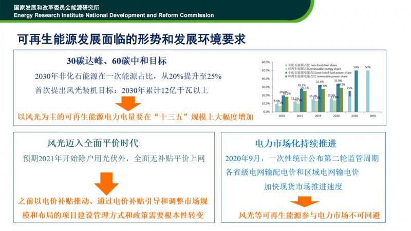 時(shí)璟麗老師在“2021光伏領(lǐng)袖大會”上的發(fā)言稿。時(shí)老師認(rèn)為:可再生能源要在能源轉(zhuǎn)型中發(fā)揮重要作用。2050年,中國要建成高比例可再生能源電力系統(tǒng)。其中,非化石能源占比將達(dá)到91%,風(fēng)電、光伏占比將達(dá)到73%!未來可再生能源的發(fā)展,從資源、技術(shù)、產(chǎn)業(yè)、經(jīng)濟(jì)性角度,均不存在瓶頸與障礙!