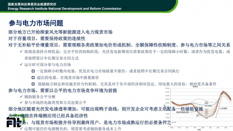 對于風(fēng)電、光伏參與市場化交易,時(shí)老師認(rèn)為:1)對于存量項(xiàng)目,要保證政策的延續(xù)性;2)對于新增項(xiàng)目,要建立公平的電力市場環(huán)境為前提,做好輔助服務(wù)費(fèi)用分?jǐn)?、參與的類型和方式也要公平。