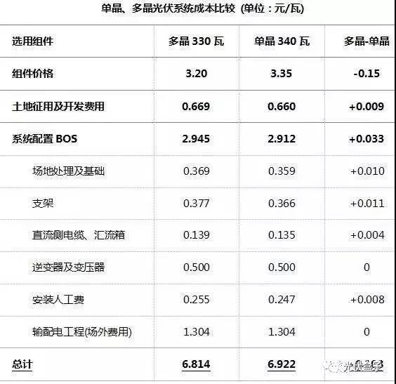 假設(shè)目前可選的多晶組件功率為330瓦,單晶組件功率為340瓦,電站投資者應(yīng)該選擇多晶組件還是單晶組件?