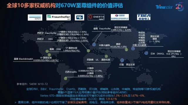 除此之外,DNV、拉美Enertis、北美Black&Veatch、西勘院等十余家國內(nèi)外權(quán)威機(jī)構(gòu)在全球范圍內(nèi)對(duì)600W+高功率組件進(jìn)行了廣泛的價(jià)值分析,覆蓋了15大應(yīng)用場(chǎng)景。