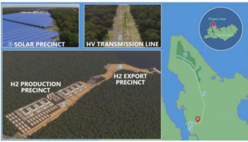 該光伏電站的光伏系統(tǒng)將采用單軸跟蹤支架,每年將能夠產(chǎn)生5000GWh的清潔能源。這些電力將通過一條擬議的四回路275kV輸電線路輸送,可以將這個光伏電站的電力輸送到30公里之外的氫氣生產(chǎn)和出口區(qū)域。