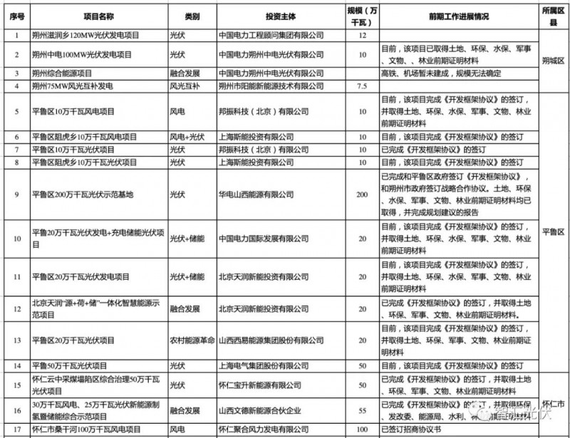 朔州將依托37個(gè)可再生能源規(guī)劃建設(shè)項(xiàng)目,24個(gè)新能源基地項(xiàng)目,總建設(shè)規(guī)模2318.5萬(wàn)千瓦新能源配置,打造千億級(jí)新能源一體化。