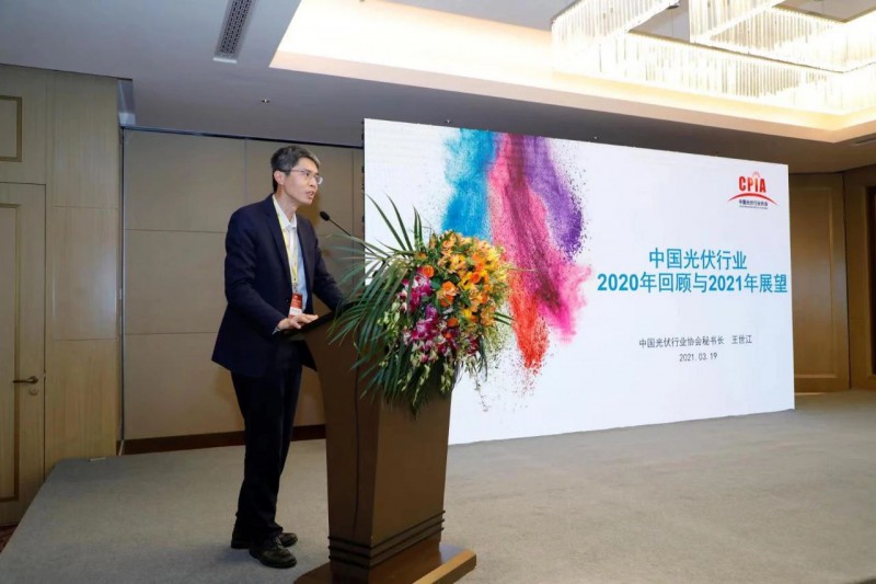 論壇上,中國光伏行業(yè)協(xié)會王世江秘書長做了題為《2020年中國光伏行業(yè)回顧和2021年中國光伏行業(yè)展望》的主題演講。王秘書長指出,2020年,國內(nèi)光伏電站裝機規(guī)模持續(xù)提升,投資成本繼續(xù)下降,產(chǎn)業(yè)集中度快速提升,技術不斷發(fā)展,融資規(guī)模不斷擴大,國際化布局不斷加強;展望2021年,全球光伏市場規(guī)模將加速擴大,源網(wǎng)荷儲一體化和多能互補大基地將成為電站開發(fā)關注熱點,技術快速迭代,行業(yè)將迎來擴產(chǎn)潮,“光伏+”模式帶來更多應用可能性,預計光伏將占據(jù)可再生能源增量市場半壁江山。
