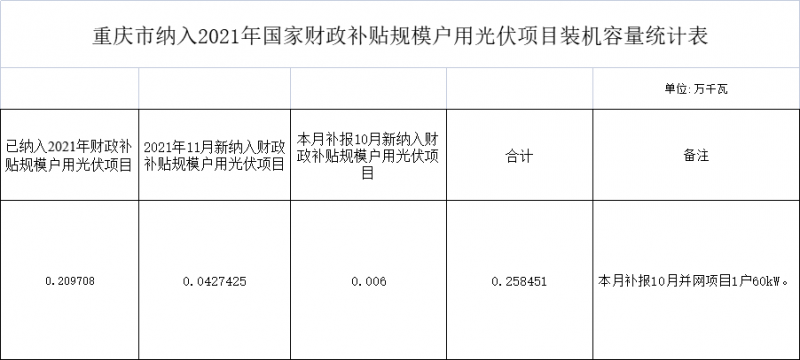 ( 包含重慶市申請(qǐng)納入2021年國(guó)家財(cái)政補(bǔ)貼規(guī)模戶(hù)用光伏項(xiàng)目裝機(jī)容量統(tǒng)計(jì)表和重慶市申請(qǐng)納入2021年國(guó)家財(cái)政補(bǔ)貼規(guī)模戶(hù)用光伏項(xiàng)目名單)