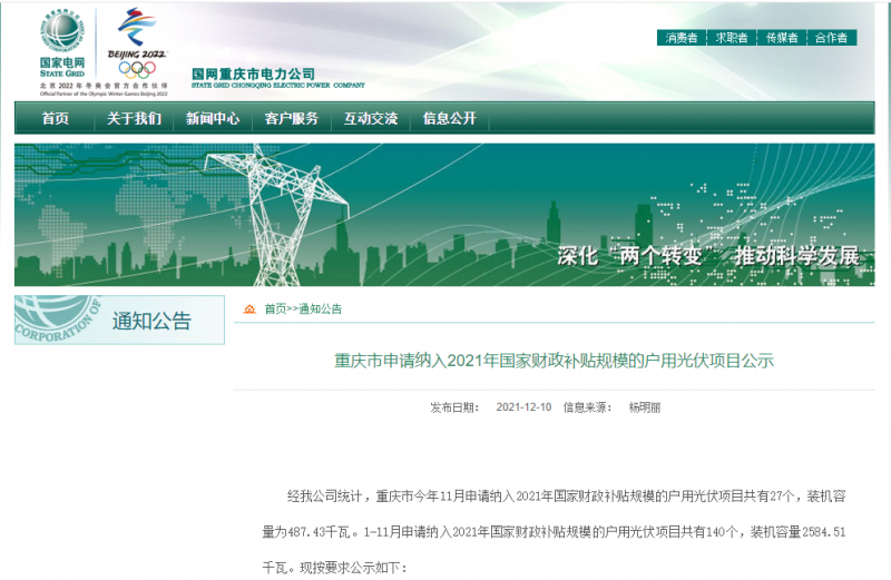 經(jīng)我公司統(tǒng)計(jì),重慶市今年11月申請(qǐng)納入2021年國(guó)家財(cái)政補(bǔ)貼規(guī)模的戶(hù)用光伏項(xiàng)目共有27個(gè),裝機(jī)容量為487.43千瓦。1-11月申請(qǐng)納入2021年國(guó)家財(cái)政補(bǔ)貼規(guī)模的戶(hù)用光伏項(xiàng)目共有140個(gè),裝機(jī)容量2584.51千瓦?,F(xiàn)按要求公示如下:
