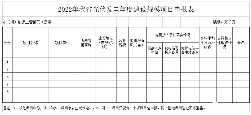 為積極貫徹落實(shí)國(guó)家“碳達(dá)峰、碳中和”工作目標(biāo),實(shí)現(xiàn)我省能源產(chǎn)業(yè)轉(zhuǎn)型、高質(zhì)量發(fā)展,有序推進(jìn)新能源項(xiàng)目建設(shè),根據(jù)《貴州省風(fēng)電光伏發(fā)電項(xiàng)目管理暫行辦法》,現(xiàn)開展我省2022年風(fēng)電光伏發(fā)電年度建設(shè)規(guī)模項(xiàng)目申報(bào)工作,有關(guān)事項(xiàng)通知如下: