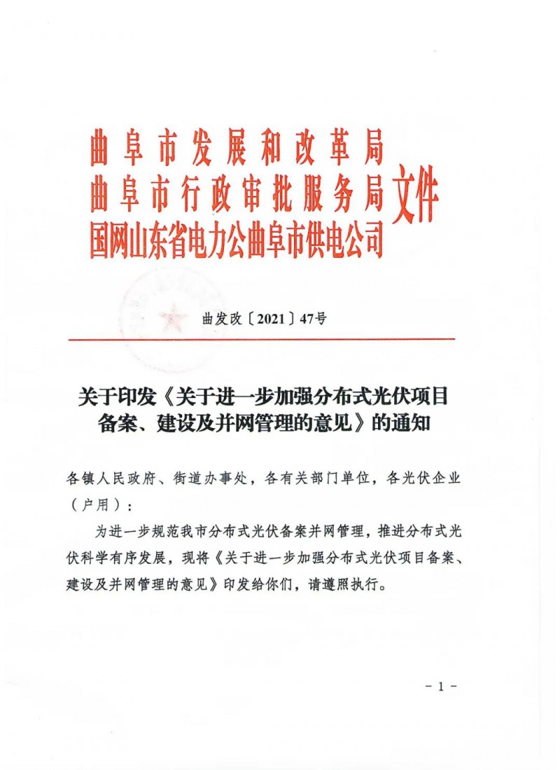 近日(12月10日),山東省曲阜市發(fā)改局發(fā)布《關(guān)于進(jìn)一步加強(qiáng)分布式光伏項(xiàng)目備案、建設(shè)及并網(wǎng)管理的意見(jiàn)》,意見(jiàn)指出,要規(guī)范分布式光伏違約私自增容處理: