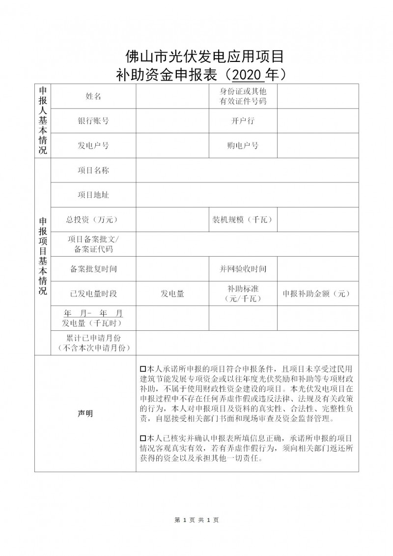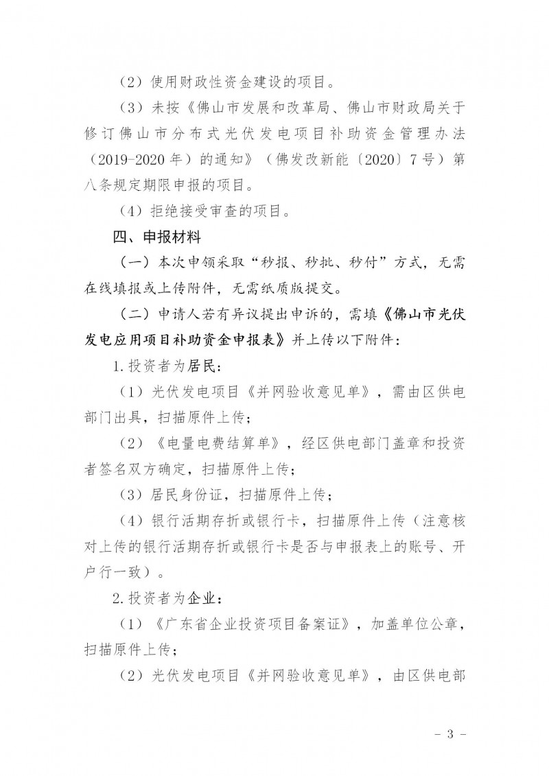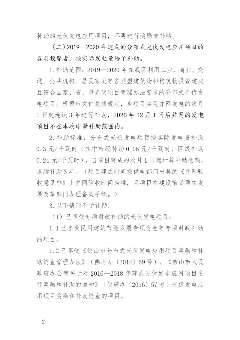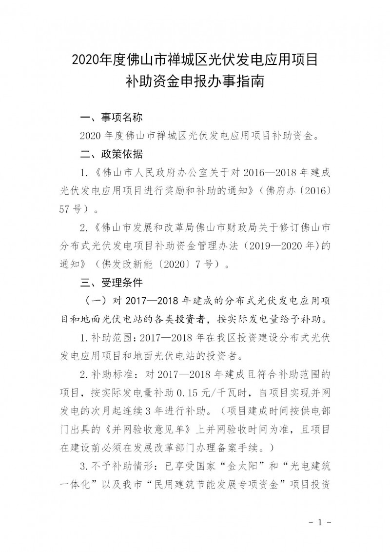 根據(jù)《佛山市人民政府辦公室關(guān)于對2016—2018年建成光伏發(fā)電應用項目進行獎勵和補助的通知》(佛府辦〔2016〕57號,見附件1)、《佛山市發(fā)展和改革局佛山市財政局關(guān)于修訂佛山市分布式光伏發(fā)電項目補助資金管理辦法(2019—2020年)的通知》(佛發(fā)改新能〔2020〕7號,見附件2)的文件要求,現(xiàn)開展我區(qū)2020年度光伏補助資金申報工作,并將有關(guān)事項通知如下: