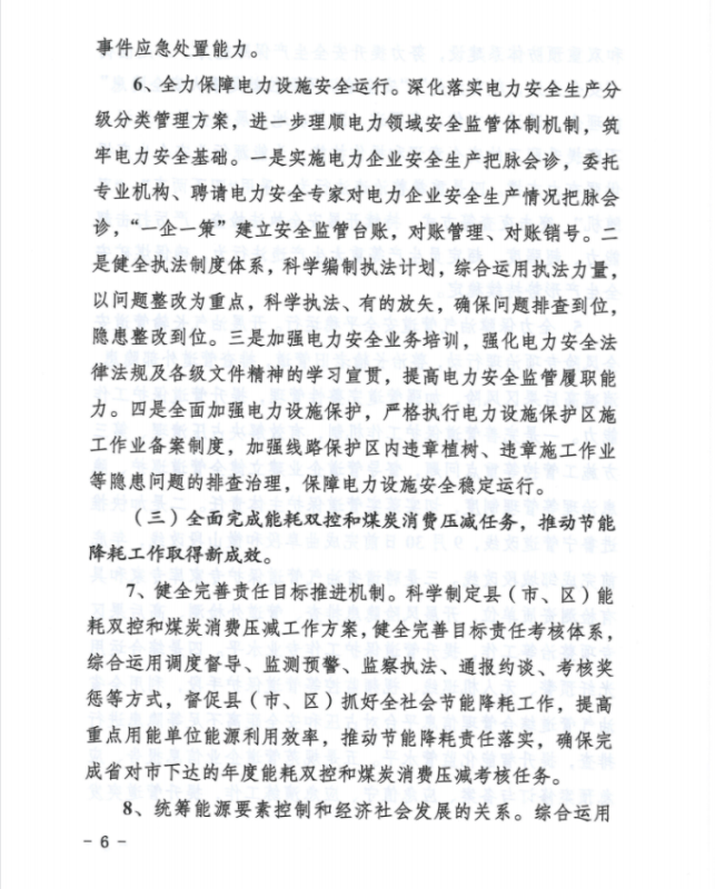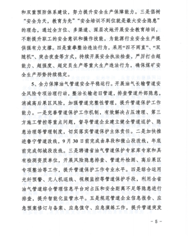 1、能源安全方面:全面落實安全監(jiān)管和設(shè)施保護(hù)職責(zé),理順監(jiān)管體制機(jī)制,以安全責(zé)任落實為抓手,全力保障煤礦安全生產(chǎn)和電力、油氣管道設(shè)施安全運(yùn)行,確保能源領(lǐng)域安全生產(chǎn)形勢持續(xù)穩(wěn)定向好。