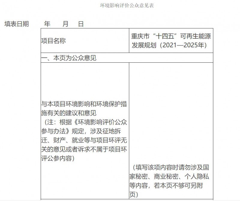 原標題:重慶市“十四五”可再生能源發(fā)展規(guī)劃(2021—2025年)環(huán)境影響評價公眾參與第一次信息公示