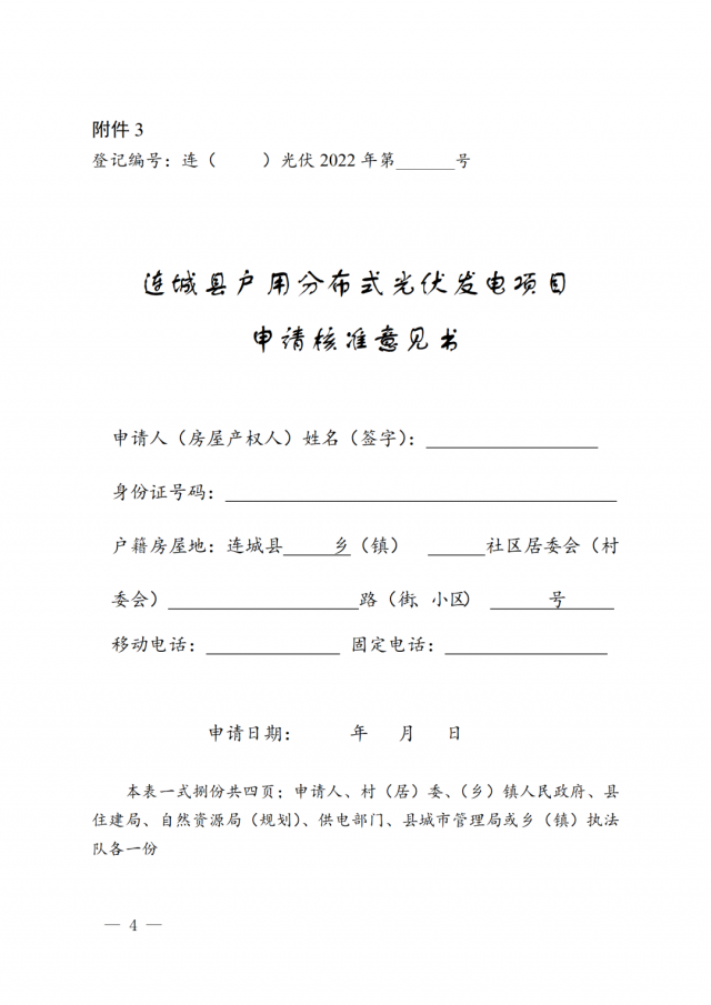 3.連城縣戶用房屋(建筑物)分布式光伏發(fā)電項目申請核準(zhǔn)意見書