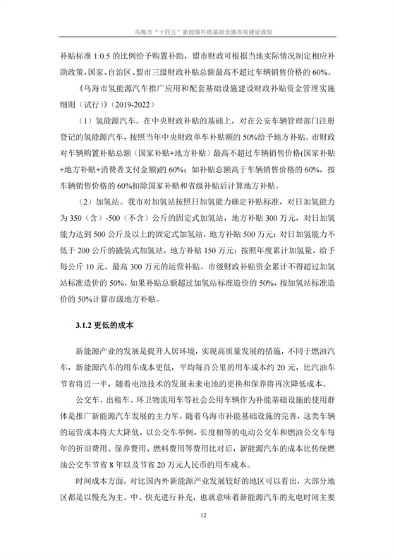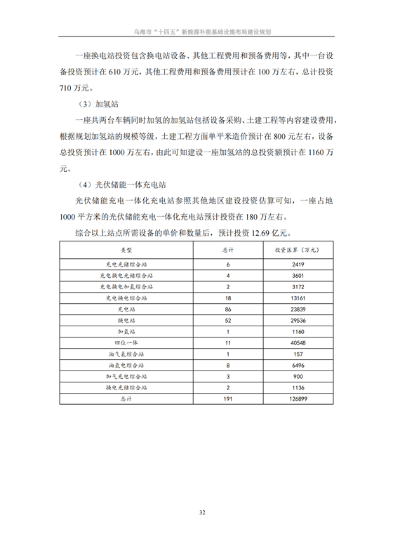 日前,內蒙古自治區(qū)烏海市能源局印發(fā)《烏海市“十四五”新能源補能基礎設施布局建設規(guī)劃》,《規(guī)劃》提出發(fā)展目標:建設補能基礎設施共計194座,包含11座四位一體綜合站,加油加氫充電綜合站8座,加油加氣加氫綜合站1座,充電換電綜合站18座,充電換電加氫綜合站2座,充電換電光伏儲能綜合站4座,充電光伏儲能綜合站6座,換電光儲綜合站2座,加氣充電綜合站3座,充電站86座,換電站52座,加氫站1座。