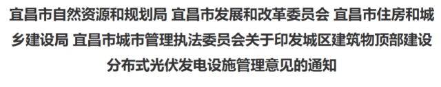 四、有關審批及備案流程為貫徹《國務院辦公廳關于開展工程建設項目審批制度改革試點的通知》(國辦發(fā)〔2018〕33號),依照《宜昌市工程建設項目審批制度改革實施方案》(宜府發(fā)〔2019〕7號)關于精減審批事項的要求,在限建區(qū)域外且滿足要求安裝屋頂分布式光伏發(fā)電設施的,先由區(qū)發(fā)改部門辦理項目備案證,再到區(qū)綜合行政執(zhí)法部門備案后實施,無需辦理規(guī)劃許可。