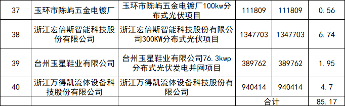 11月9日,玉環(huán)市人民政府關(guān)于撥付2021年節(jié)能技改項目、分布式光伏項目專項資金的公示,其中2021年分布式光伏項目獎勵資金達(dá)到85.17萬元。