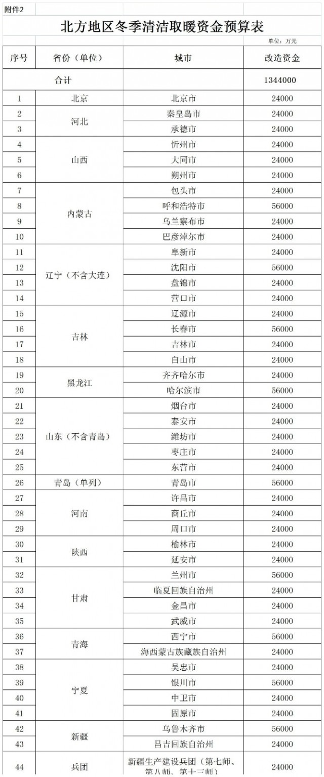 二、北方地區(qū)冬季清潔取暖資金額度詳見附件2、3。請(qǐng)相關(guān)省抓緊撥付資金,會(huì)同有關(guān)部門督促相關(guān)城市積極穩(wěn)妥地做好清潔取暖工作。