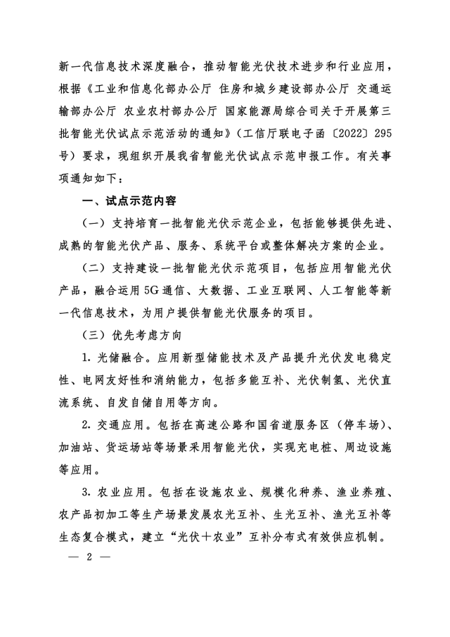 2)支持建設(shè)一批智能光伏示范項(xiàng)目;