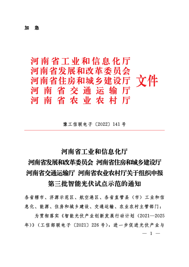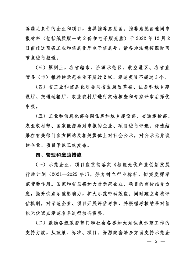 11月24日,河南省工信廳、發(fā)改委、住建廳、交通廳、農(nóng)業(yè)廳等聯(lián)合下發(fā)《關(guān)于組織申報(bào)第三批智能光伏試點(diǎn)示范的通知》,對示范企業(yè)、示范項(xiàng)目予以支持,包括: