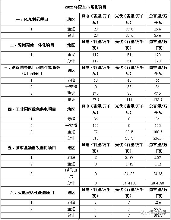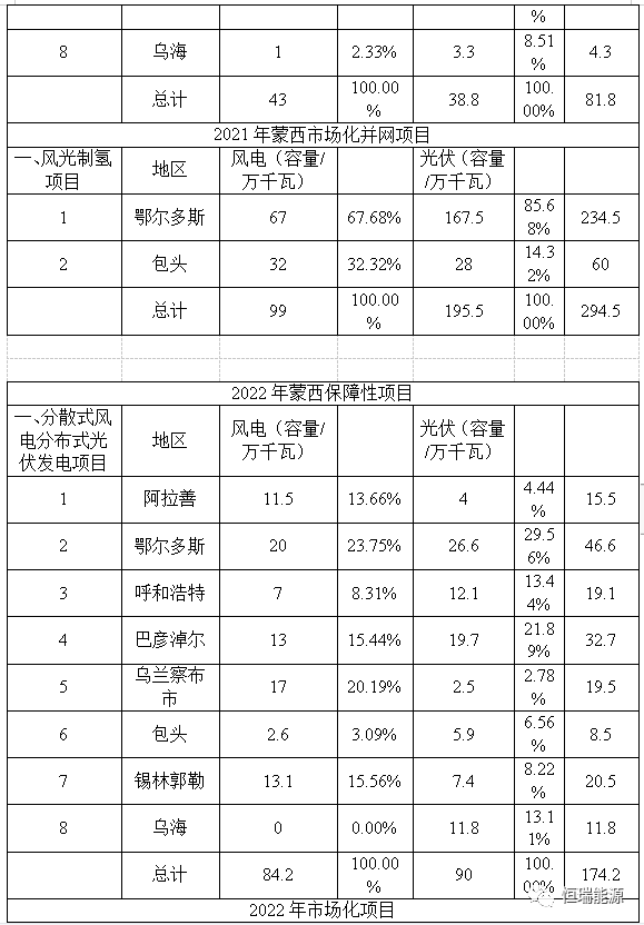 2、(蒙東地區(qū))2021~2022年可再生能源指標分配情況表
