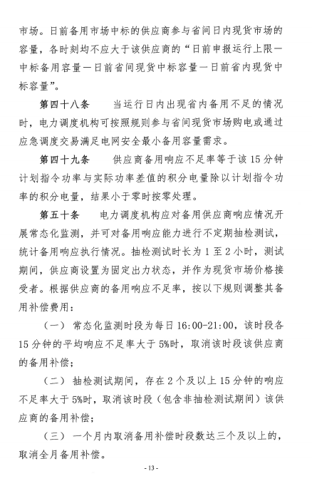 1月13日,山西能源監(jiān)管辦發(fā)布關(guān)于征求《山西正備用輔助服務(wù)市場(chǎng)交易實(shí)施細(xì)則(征求意見(jiàn)稿)》意見(jiàn)的函,文件指出,備用服務(wù)供應(yīng)商:執(zhí)行備用市場(chǎng)交易結(jié)果,能夠響應(yīng)調(diào)度指令,調(diào)整發(fā)電出力(或用電負(fù)荷)提供備用服務(wù)的市場(chǎng)主體,包括參與現(xiàn)貨市場(chǎng)的燃煤機(jī)組和燃?xì)鈾C(jī)組,省調(diào)直調(diào)的新型儲(chǔ)能電站,虛擬電廠、可控負(fù)荷,以及具備調(diào)節(jié)能力的風(fēng)電場(chǎng)、光伏電站等。新能源企業(yè)和電力用戶(hù)開(kāi)展技術(shù)改造,具備穩(wěn)定提供備用輔助服務(wù)的條件后,需通過(guò)相關(guān)性能測(cè)試。