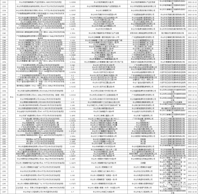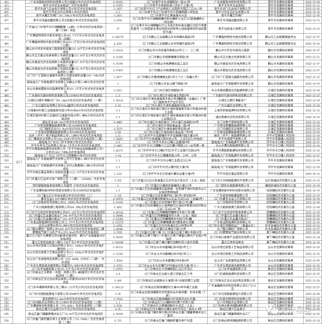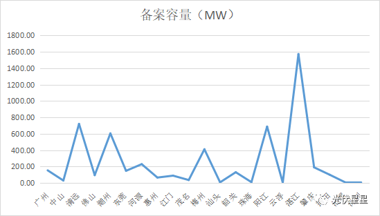 據(jù)廣東省投資備案平臺上統(tǒng)計,2022年12月廣東省光伏項目備案1381個,總?cè)萘考s5.3GW。其中地面光伏項目19個,總?cè)萘繛?720MW,其中湛江占5個,總?cè)萘?220MW,陽江、清遠、潮州皆超600MW,最大容量地面光伏項目為潮州項目600MW。