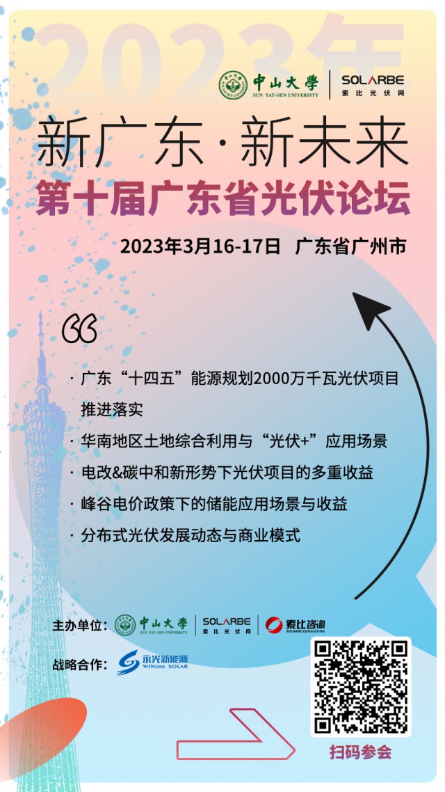 新廣東 新未來!第十屆廣東省光伏論壇3月16-17日聚首廣州,為時代籌謀!分布式光伏重心南遷之際與各位同仁一起搶占先機(jī)、贏得主動!趕緊點(diǎn)擊了解詳情報名吧!