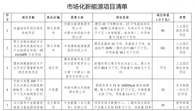 按照《內(nèi)蒙古自治區(qū)工業(yè)園區(qū)綠色供電項目實施細(xì)則(2022年版)》《內(nèi)蒙古自治區(qū)風(fēng)光制氫一體化項目實施細(xì)則(2022年版)》《內(nèi)蒙古自治區(qū)源網(wǎng)荷儲一體化項目實施細(xì)則(2022年版)》要求,我局組織專家對各盟市申報的5個市場化新能源項目方案進(jìn)行了評估,5個項目均納入市場化新能源項目清單,共配建新能源規(guī)模348.3萬千瓦,其中風(fēng)電259萬千瓦、光伏89.3萬千瓦。經(jīng)報請自治區(qū)人民政府同意,現(xiàn)將市場化新能源項目清單印發(fā)你們,并將有關(guān)要求通知如下。