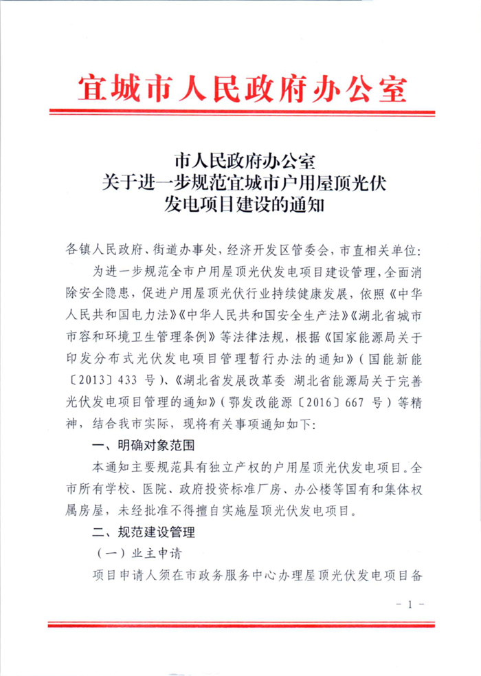 近日,湖北宜城發(fā)布《關(guān)于進(jìn)一步規(guī)范宜城市戶用屋頂光伏發(fā)電項(xiàng)目建設(shè)的通知》,明確指出全市所有學(xué)校、醫(yī)院、政府投資標(biāo)準(zhǔn)廠房、辦公樓等國有和集體權(quán)屬房屋,未經(jīng)批準(zhǔn)不得擅自實(shí)施屋頂光伏發(fā)電項(xiàng)目,而戶用光伏項(xiàng)目并網(wǎng)需要8個部門的簽字。