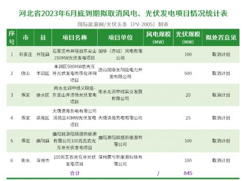河北省2023年6月底到期風(fēng)電、光伏發(fā)電項(xiàng)目擬調(diào)整情況公示