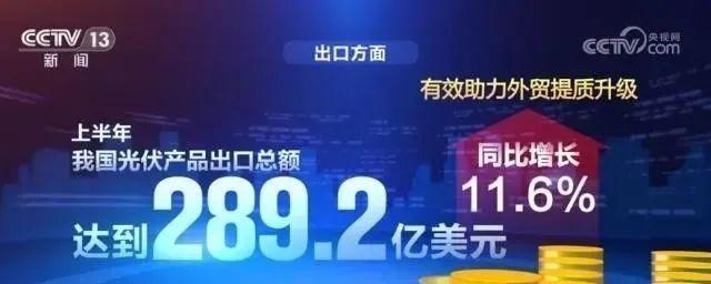 出口方面,上半年,我國(guó)光伏產(chǎn)品出口總額達(dá)到289.2億美元,同比增長(zhǎng)11.6%,有效助力外貿(mào)提質(zhì)升級(jí)。