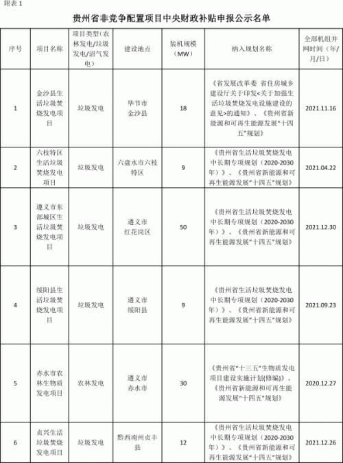 附件:1.貴州省非競爭配置項(xiàng)目中央財(cái)政補(bǔ)貼申報(bào)公示名單