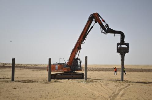 近日,華能庫布齊沙漠鄂爾多斯南部新能源基地項目100萬千瓦光伏先導工程現(xiàn)場打下第一根基樁,標志著項目工程主體進入全面施工階段。