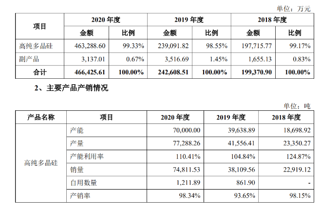 根據(jù)硅業(yè)分會(huì)數(shù)據(jù),2020 年度國內(nèi)多晶硅產(chǎn)量約為 39.6 萬噸,該公司對應(yīng)期間的多晶硅產(chǎn)量為 7.73 萬噸,占國內(nèi)多晶硅產(chǎn)量的 19.52%;2020 年度國內(nèi)單晶硅片用料產(chǎn)量為 32.6 萬噸,占國內(nèi)多晶硅產(chǎn)量的 82.4%,該公司在占據(jù)主流的單晶硅片用料的市占率為 22.68%。