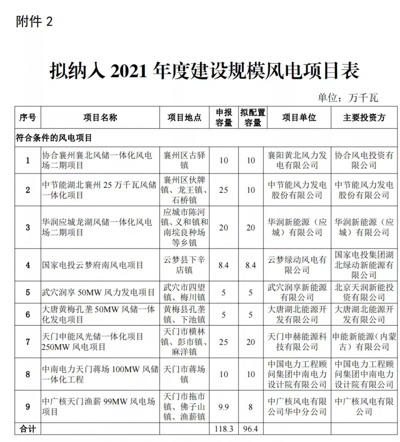 2)9個(gè)風(fēng)電項(xiàng)目,總規(guī)模118.3萬(wàn)千瓦 ,擬配置規(guī)模96.4萬(wàn)千瓦;