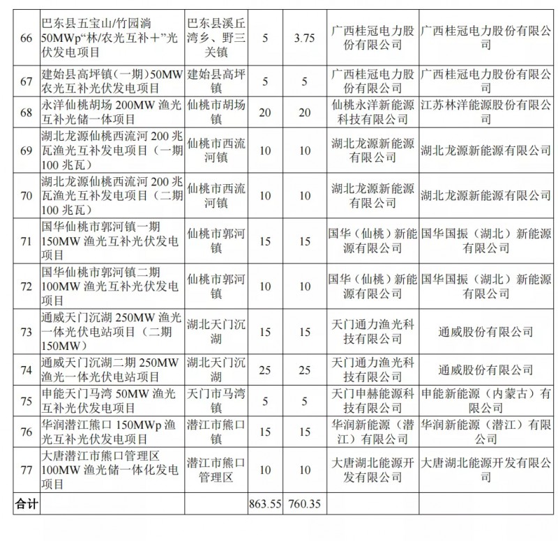 3)77個(gè)平價(jià)光伏項(xiàng)目,總規(guī)模863.55萬(wàn)千瓦 ,擬配置規(guī)模760.35萬(wàn)千瓦;