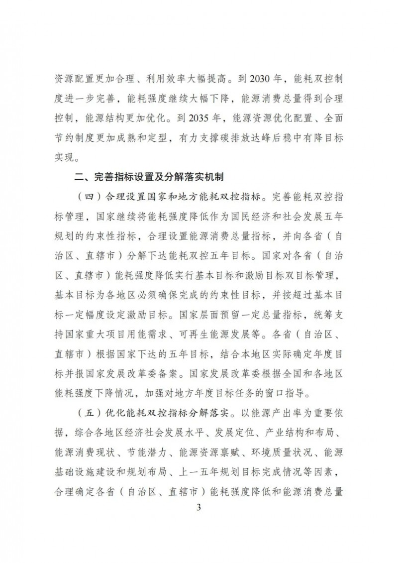 到2025年,能耗雙控制度更加健全,能源資源配置更加合理、利用效率大幅提高。到2030年,能耗雙控制度進(jìn)一步完善,能耗強度繼續(xù)大幅下降,能源消費總量得到合理控制,能源結(jié)構(gòu)更加優(yōu)化。到2035年,能源資源優(yōu)化配置、全面節(jié)約制度更加成熟和定型,有力支撐碳排放達(dá)峰后穩(wěn)中有降目標(biāo)實現(xiàn)。