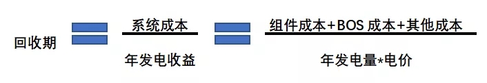 光伏系統(tǒng)的靜態(tài)回收期與系統(tǒng)成本、年發(fā)電收益相關,若維持相同的回收期,則系統(tǒng)成本與年發(fā)電收益成正比例關系。