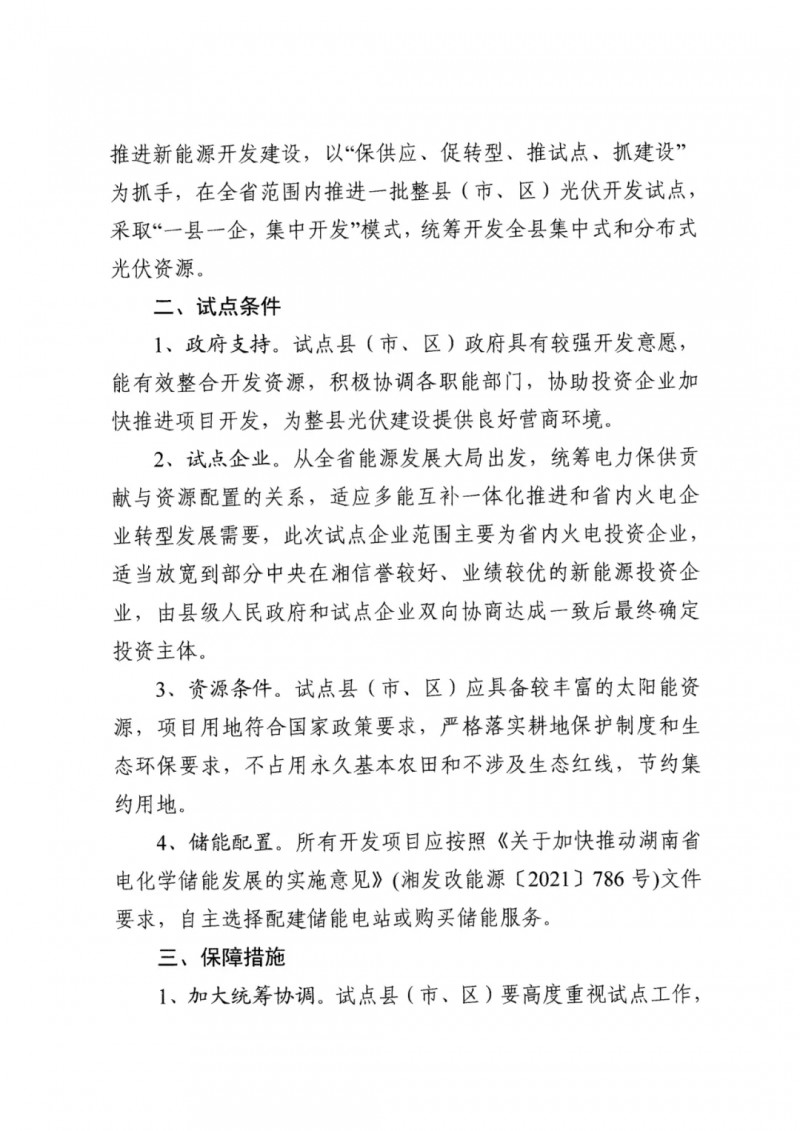 根據(jù)文件,此次試點(diǎn)企業(yè)范圍主要為省內(nèi)火電投資企業(yè),適當(dāng)放寬到部分中央在湘信譽(yù)較好、業(yè)績較優(yōu)的新能源投資企業(yè)。試點(diǎn)企業(yè)單個(gè)集中式光伏項(xiàng)目建設(shè)規(guī)模應(yīng)不低于1萬千瓦,允許非試點(diǎn)企業(yè)和自然人利用自有屋頂按照“自發(fā)自用,余電上網(wǎng)”的原則建設(shè)屋頂分布式光伏項(xiàng)目。