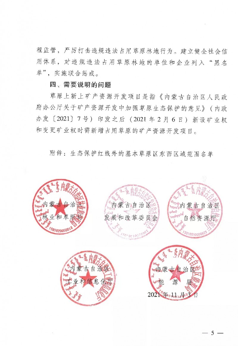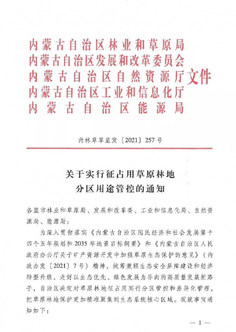 近日,內(nèi)蒙古自治區(qū)林業(yè)和草原局,內(nèi)蒙古自治區(qū)發(fā)展和改革委員會,內(nèi)蒙古自治區(qū)自然資源廳,內(nèi)蒙古自治區(qū)工業(yè)和信息化廳,內(nèi)蒙古自治區(qū)能源局聯(lián)合發(fā)布了《關(guān)于實行征占用草原林地分區(qū)用途管控的通知》,把草原林地保護更加精準聚焦到生態(tài)系統(tǒng)核心區(qū)域。文件顯示,內(nèi)蒙古將實行征占用草原林地分區(qū)用途管控。