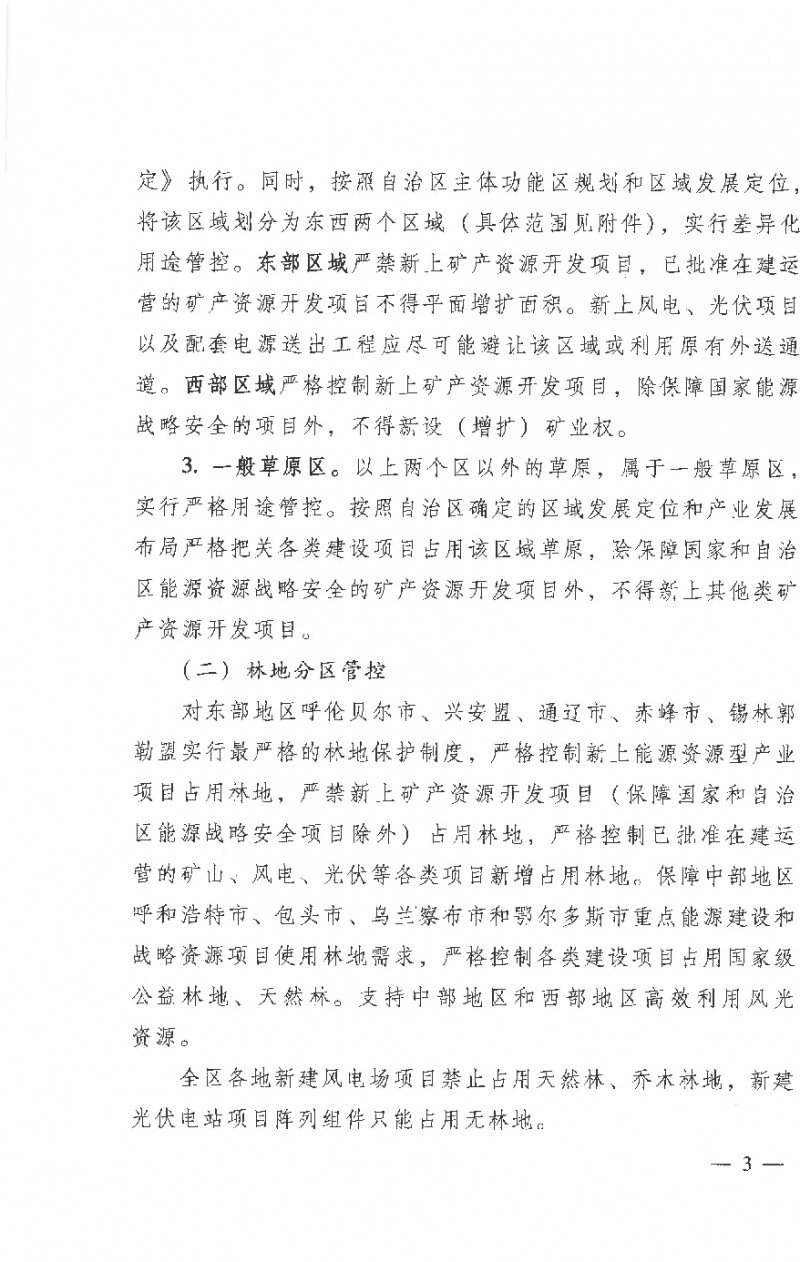 對東部地區(qū)呼倫貝爾市、興安盟、通遼市、赤峰市、錫林郭勒盟實行最嚴格的林地保護制度,嚴格控制新上能源資源型產(chǎn)業(yè)項目占用林地,嚴禁新上礦產(chǎn)資源開發(fā)項目(保障國家和自治區(qū)能源戰(zhàn)略安全項目除外)占用林地,嚴格控制已批準在建運營的礦山、風電、光伏等各類項目新增占用林地。