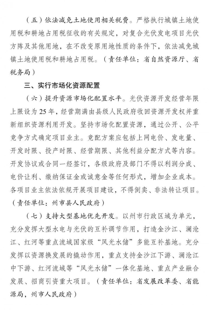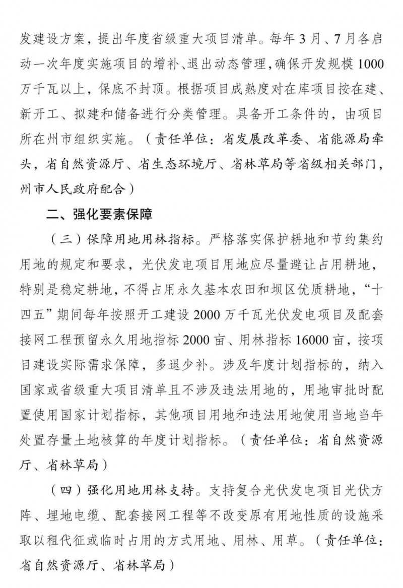 “十四五”期間,光伏項(xiàng)目確保每年開(kāi)工20GW以上,并預(yù)留配套接網(wǎng)工程用地2000畝和用林指標(biāo)16000畝。在不改變?cè)玫匦再|(zhì)的條件下,依法減免城鎮(zhèn)土地使用稅和耕地占用稅。