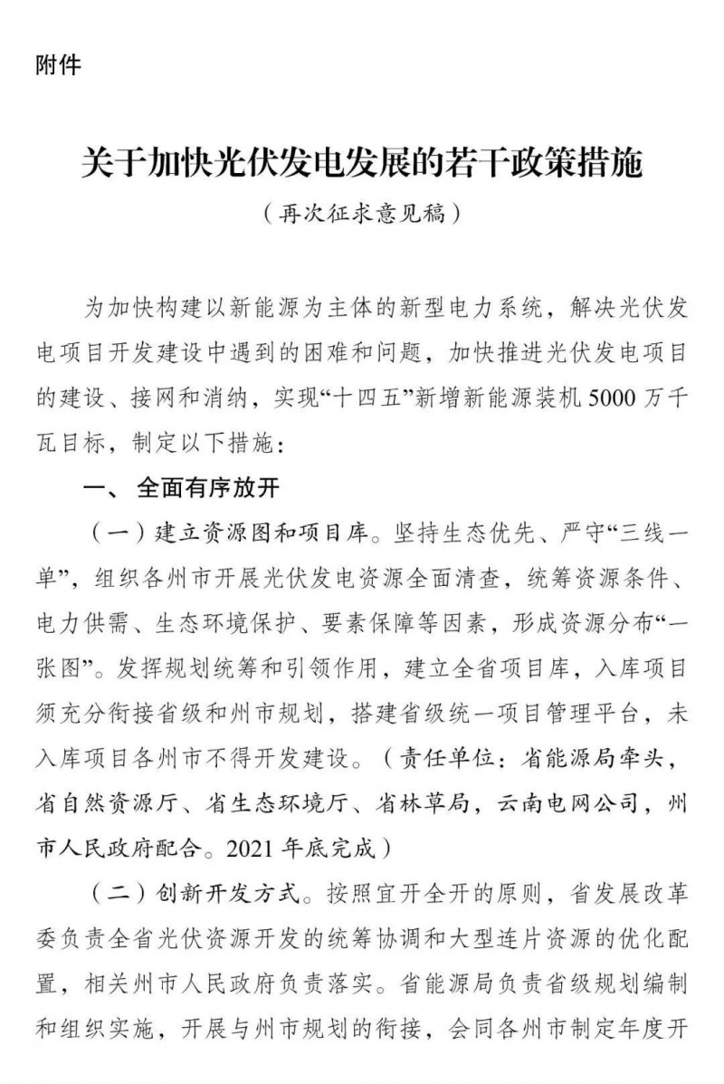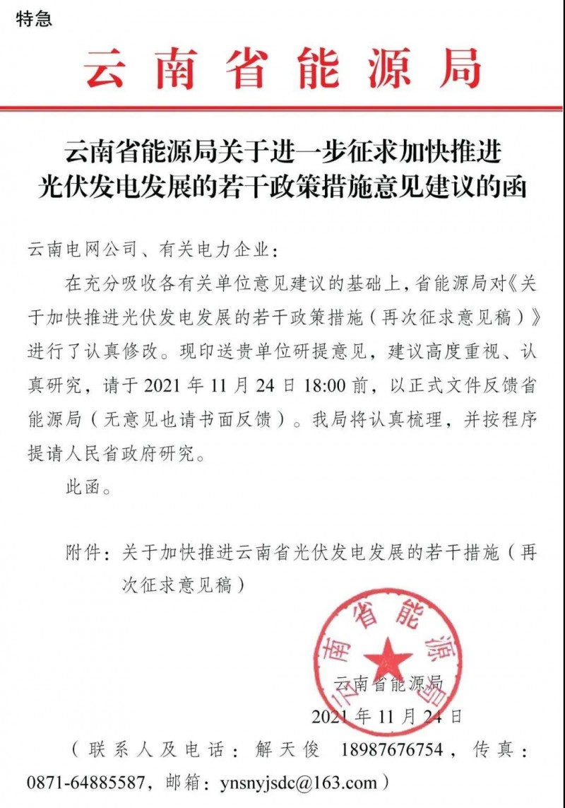 11月24日,云南省能源局下發(fā)《關(guān)于進(jìn)一步加快推進(jìn)光伏發(fā)電發(fā)展的若干政策措施意見(jiàn)建議的函》,就云南光伏光伏給出指導(dǎo)意見(jiàn)。